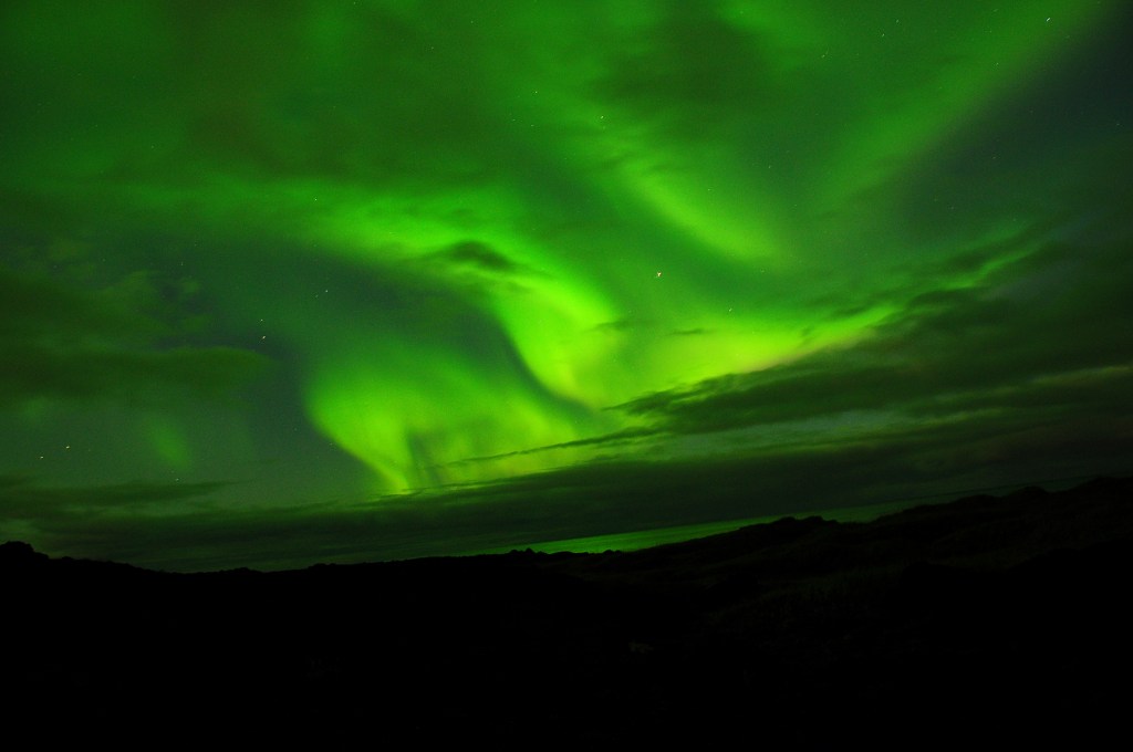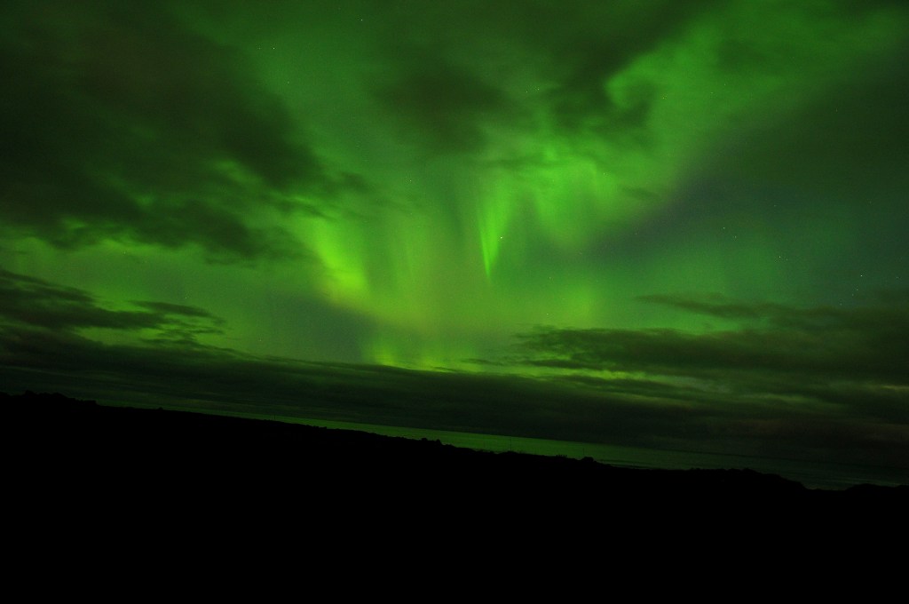 The hunt for the Northern Lights is an evening-night trip to observe Mrs. Aurora away from the city lights. The northern lights are an amazing spectacle of colored light visible in the night, cloudless sky. Auroras are the result of disturbances in the magnetosphere caused by solar wind. We always wait for moments when disturbances are strong enough to alter the trajectories of charged particles in solar wind and magnetospheric plasma. These particles, mainly electrons and protons, precipitate into the upper atmosphere (thermosphere / exosphere). The northern lights can be seen from September to April. The only conditions are suitable solar radiation conditions, night (it is not always night in Iceland) and at least partially clear skies. We organize hunting in the Reykjanes Peninsula (Reyjkavik and Keflavik area), the Golden Circle and the Snaefellsnes Peninsula